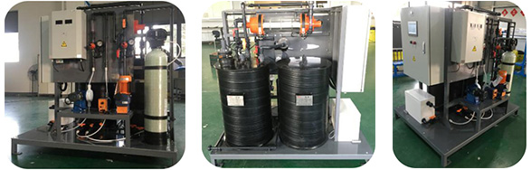 该设备由进水模块、溶盐模块、发生模块、储存及排氢模块、投加模块及控制模块组成。