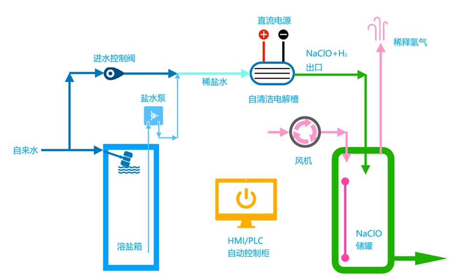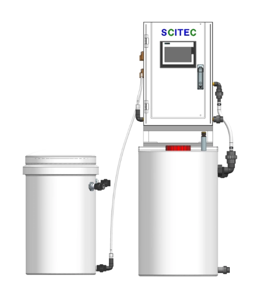 SCITEC免酸洗次氯酸钠发生器是上海赛一自主研发的免维护,全自动产品,它是以自清洁耐用电解槽为核心,全自动运行、高效的排氢技术和自清洁电极组成,最终产生0.5-0.7%次氯酸钠溶液。