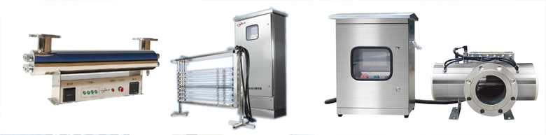 明渠式紫外线杀菌器:将若干独立的紫外模块安置在开放式的明渠中,每个紫外模块由一个不锈钢灯架、若干个紫外灯管、高透射率石英套管、自动清洗系统、配电系统和数据采集系统组成,水流靠重力流经消毒装置。可直接插入或取出紫外灯模块进行维护和检修。